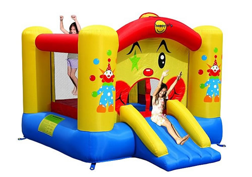 Die Hüpfburg wird gebrauchsfertig vermietet mit Gebläse, Tasche und Erdbefestigung.