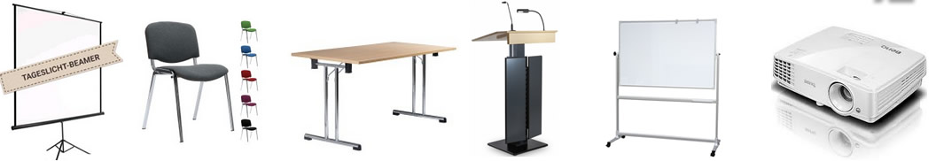 Wir bieten ein umfangreiches Angbeot von Stühlen, Tischen, Geschirr, Kaffeeautomaten bis hin zu Technik, Beamer, Beleuhtung, Raumtrennern, Discplays etc.